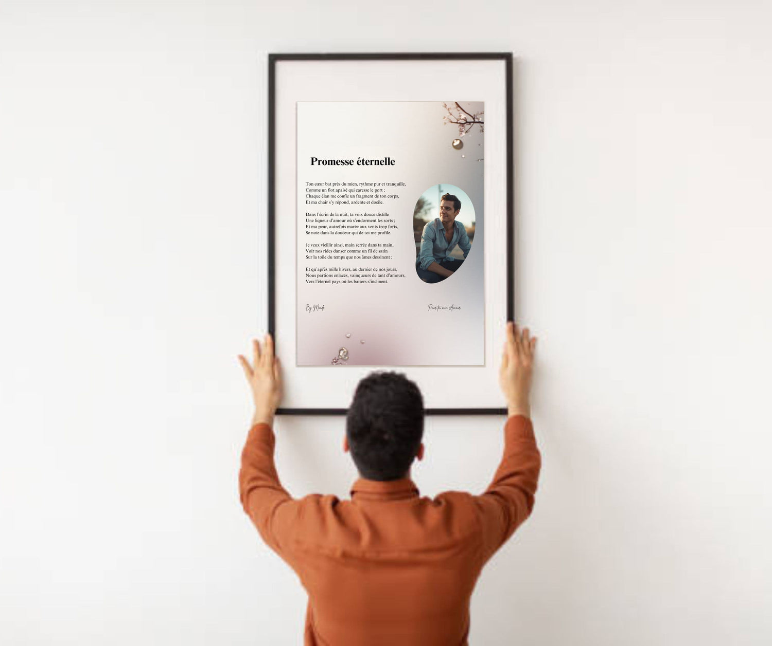 Nos équipes adaptent ensuite le poème, la mise en page et l’ambiance visuelle pour créer une œuvre qui reflète parfaitement votre intention.