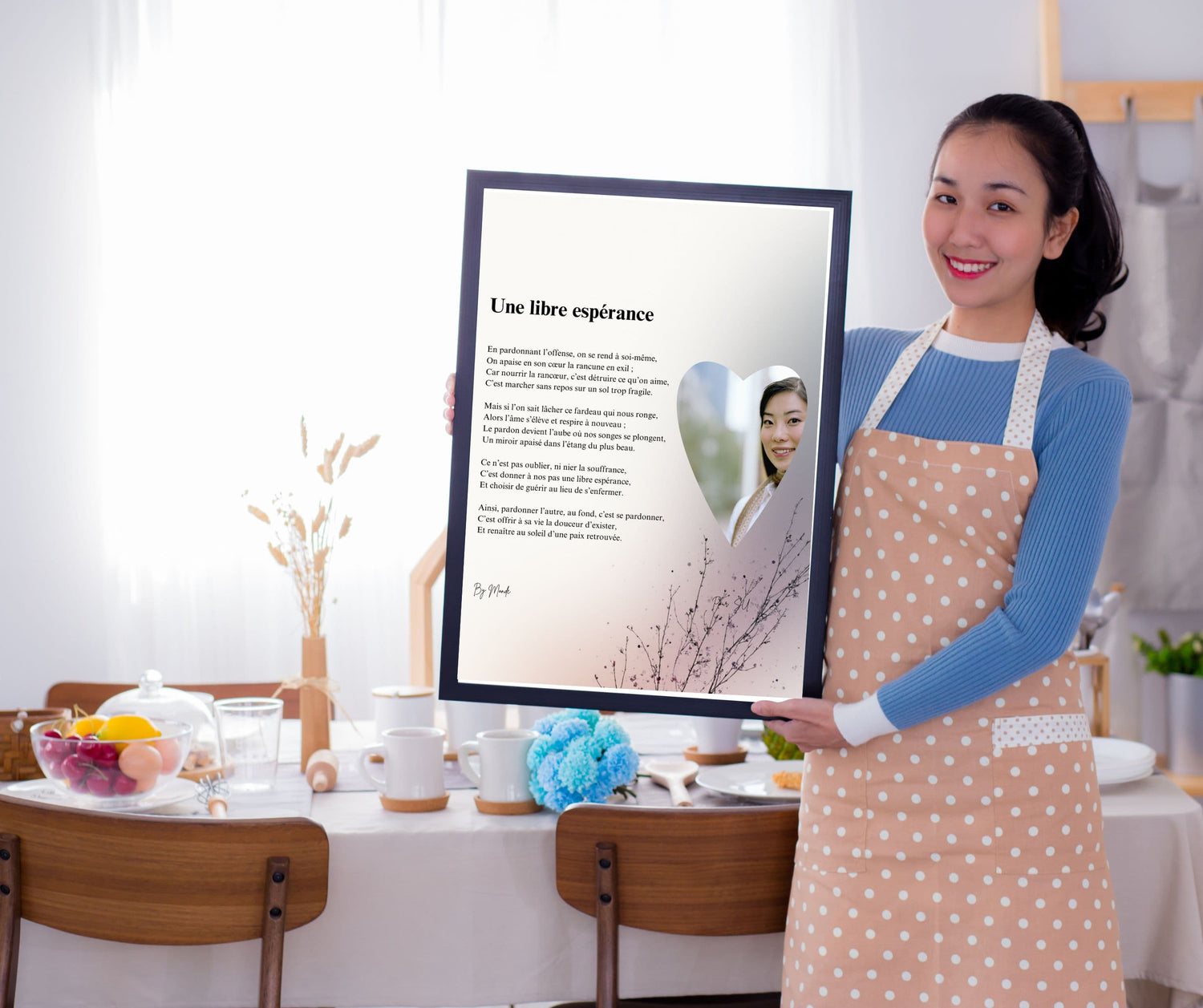 Nos poèmes sont écrits par des Experts en bien-être pour vous apaiser, inspirer, et parfois même guérir, en y plaçant exactement les mots que vous avez besoin pour vous sentir bien chaque jour : Encouragement le matin, réconfort le soir, motivation au travail...etc. Ce n'est pas qu'un simple cadre, mais c'est un allié émotionnel qui vous vous soutient 24h/24... Un seul regard, et tout devient léger.