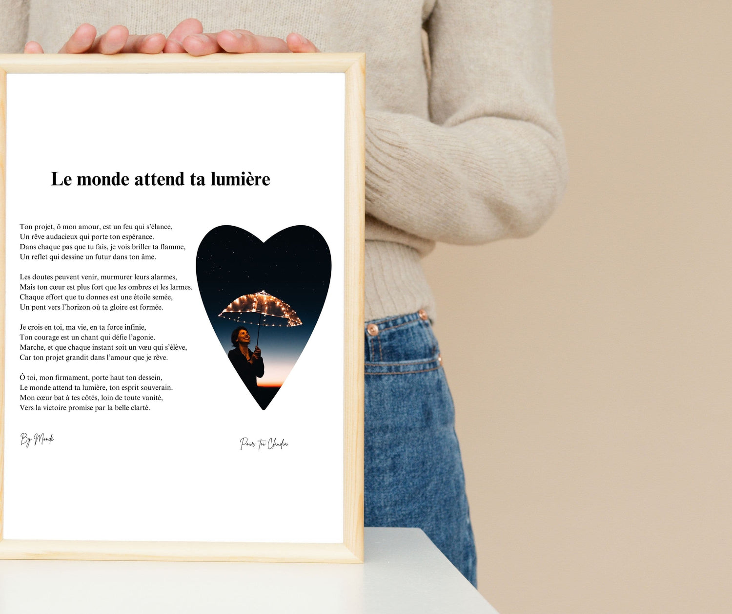 Et c’est précisément ce que nous mettons dans chacun de nos poèmes, cadres et livres personnalisés.